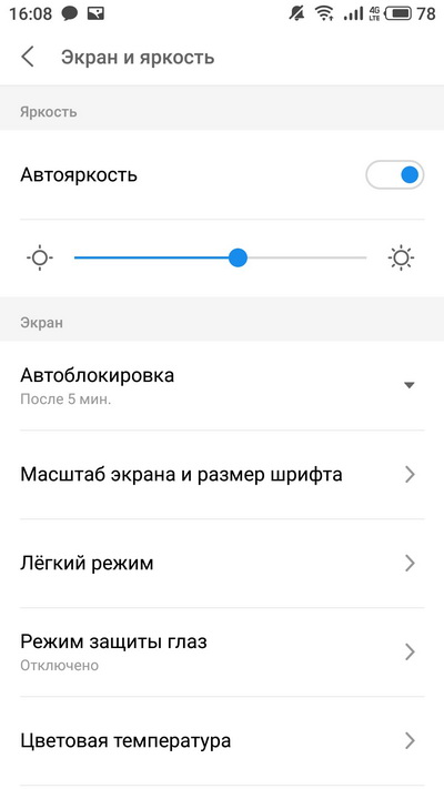Автояркость здесь настраивается под предпочтения пользователей, работает корректно.