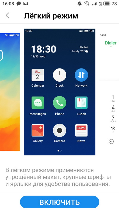 Легкий режим - очень удобный вариант "из коробки" для пожилых людей