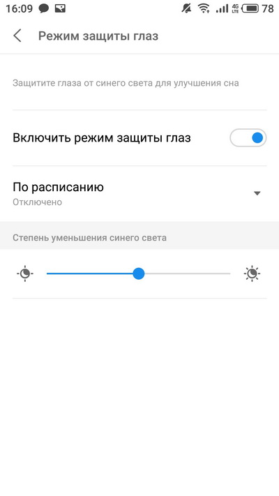 Режим защиты глаз от синего цвета - читать вечером при неярком освещении.