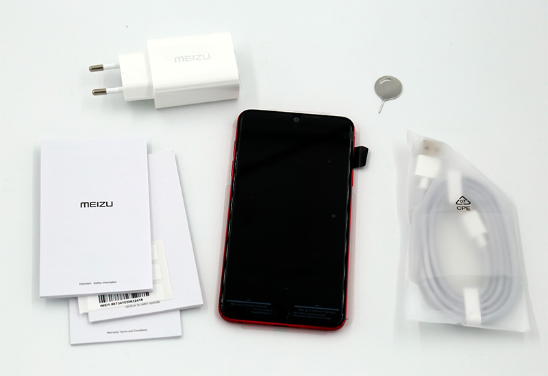 Комплект: смартфон, адаптер питания для быстрой зарядки на 24 ватта, кабель USB - Type-C, инструкции, инструмент для слота под сим-карты и карту памяти.