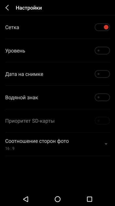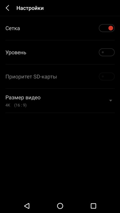 Настройки видео. Стабилизации у видео ожидаемо нет.