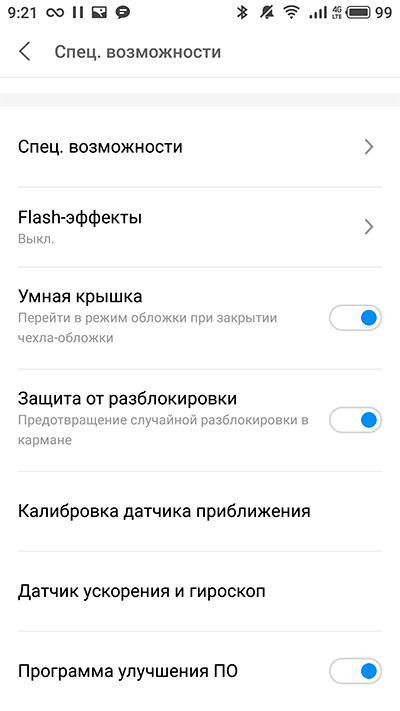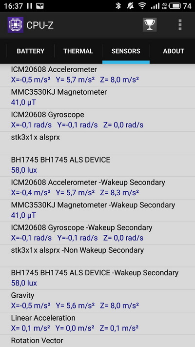 Дополнительно: датчики приближения, освещения, магнитного поля, давления, гироскоп