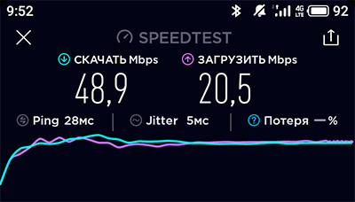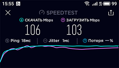 У мобильного Интернета скорости также были на ожидаемом уровне. (Подчеркну, что здесь поддерживаются используемые в России каналы LTE 3, 7 и 20.)