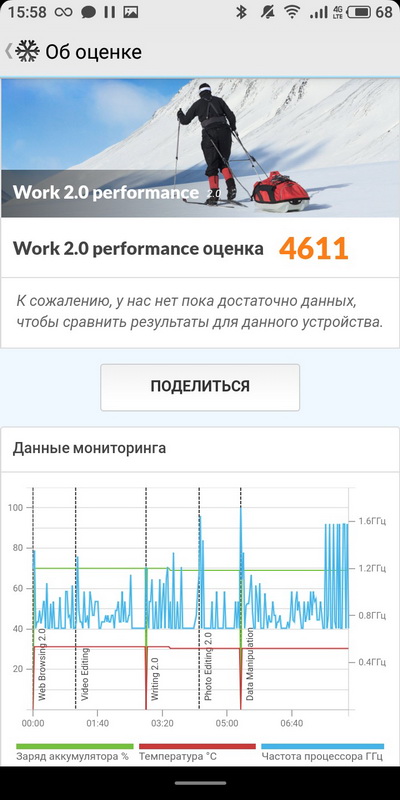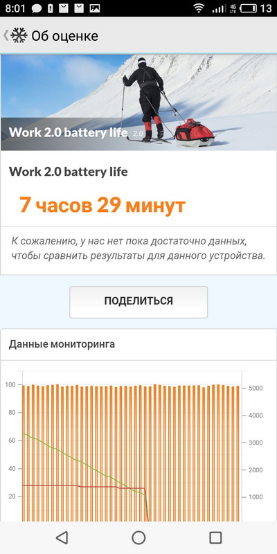 Синтетический тест PCMark. Не супер, но вполне нормально. В режиме серьезной загрузки день должен продержаться.