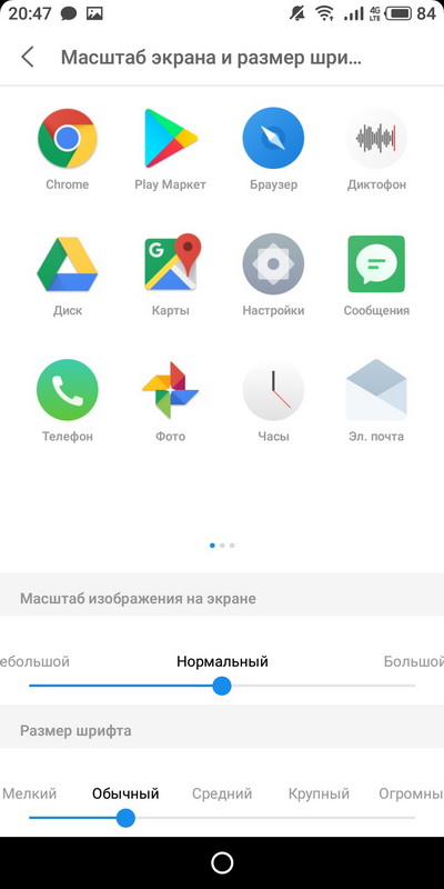 Здесь можно настраивать масштаб элементов системы и размер шрифта.