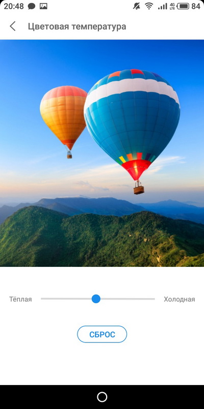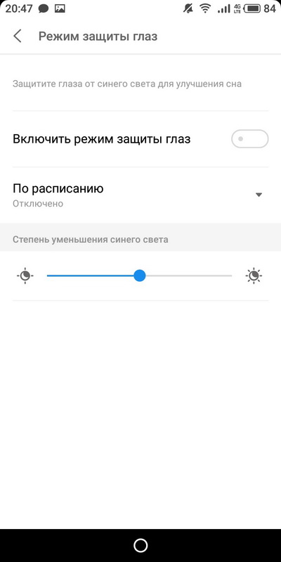Есть режим защиты глаз (уменьшение синего цвета для меньшей утомляемости), который также можно включать по расписанию.