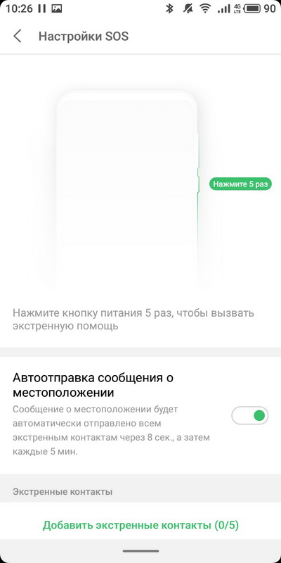 Есть специальный режим SOS (первый раз его встречаю в обычных смартфонах).