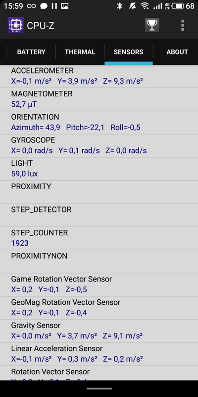 Дополнительно: акселерометр, гироскоп, датчик приближения, компас