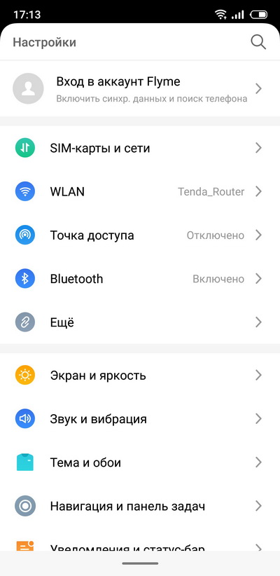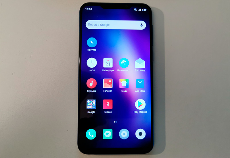 Android 8.1, оболочка Flyme 7. Главный десктоп и установленные в системе приложения.