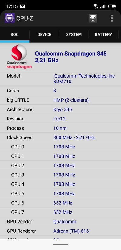 Знатоки, поясните, плиз,- то, что на скриншоте CPU-Z написано Snapdragon 845 - это так и должно быть?