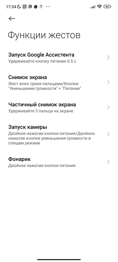 Стандартные варианты управления для MIUI: экранные кнопки и жесты, дополнительные жесты.