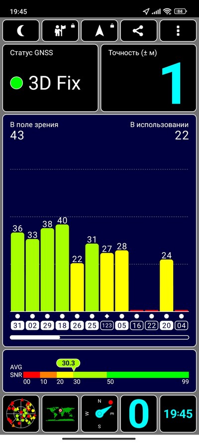 Холодный старт занял пару секунд для определения 8 спутников, 22 спутника определил за 30 секунд, в дальнейшем стартовало мгновенно и с навигацией никаких проблем не было.