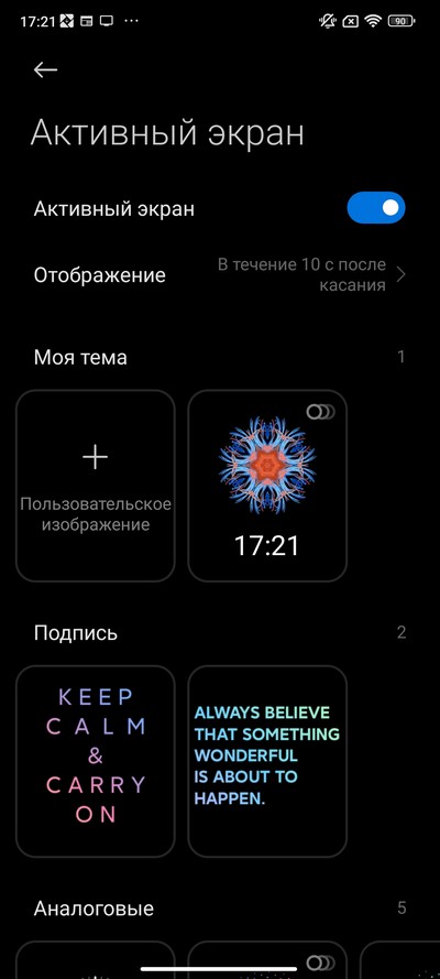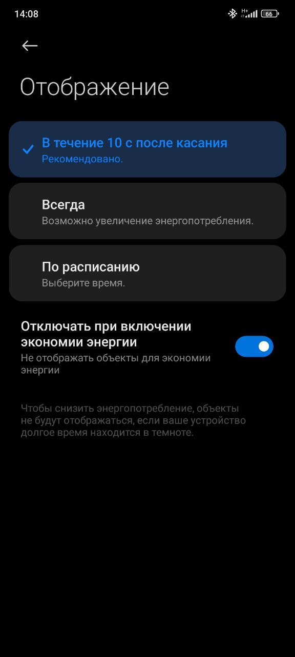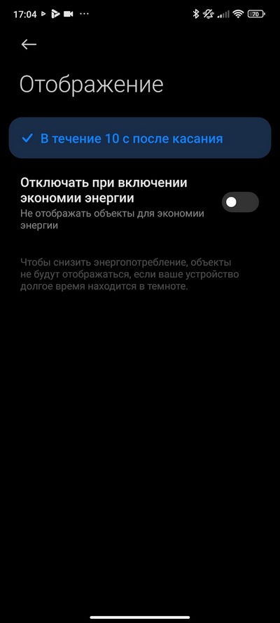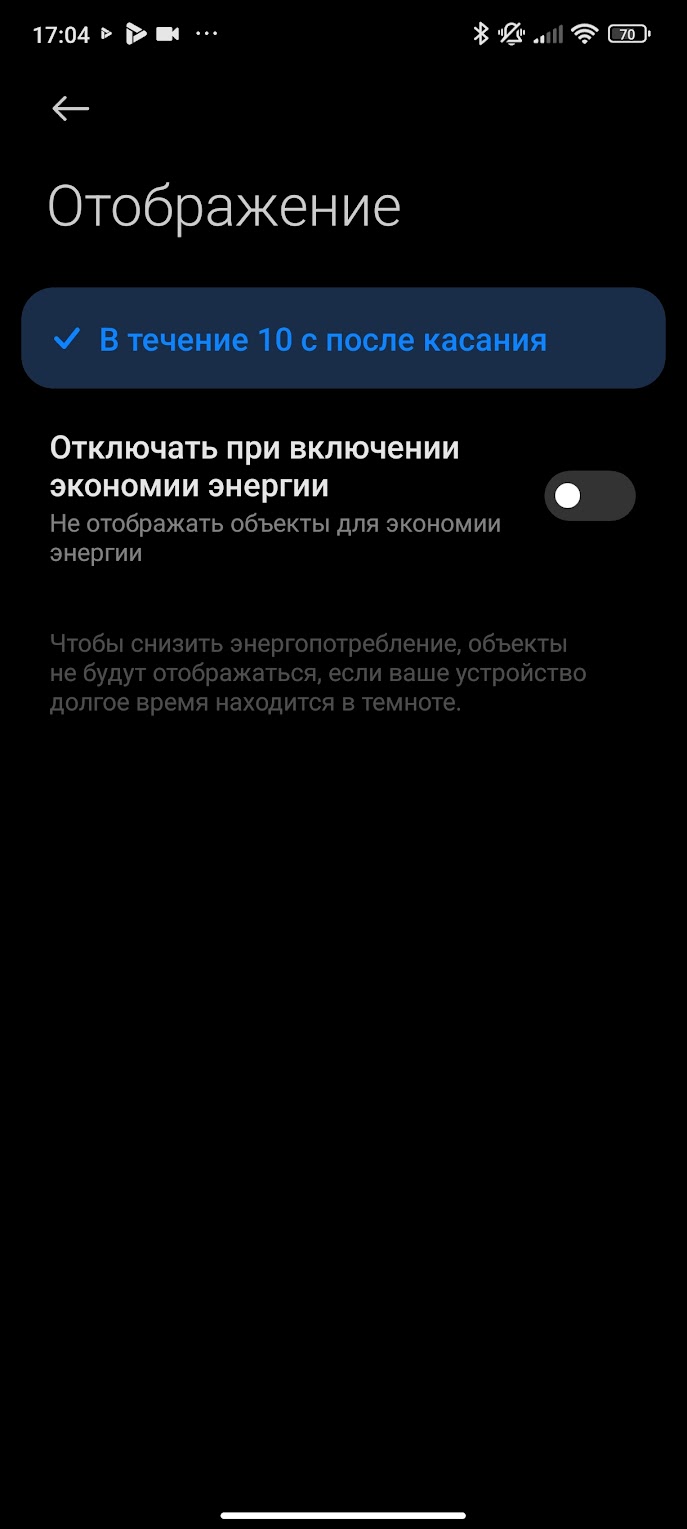 Режим постоянно включенного экрана здесь есть, но он такой же убогий, как у Redmi Note и некоторых других моделей Xiaomi - срабатывает только в течение 10 секунд после выключения или касания дисплея. На черта так сделано и почему пользовать сам не может решить, как ему использовать активный экран - это величайшая загадка современности. Нет, конечно, иметь хоть такой 10-секундный AOD, который появляется при постукивании по выключенному экрану на 10 секунд - это явно лучше, чем не иметь никакого AOD, но тем не менее. У топовых моделей вроде они добавляют возможность все время держать включенный AOD или включать по расписанию. Здесь же такого нет - только 10 секунд.