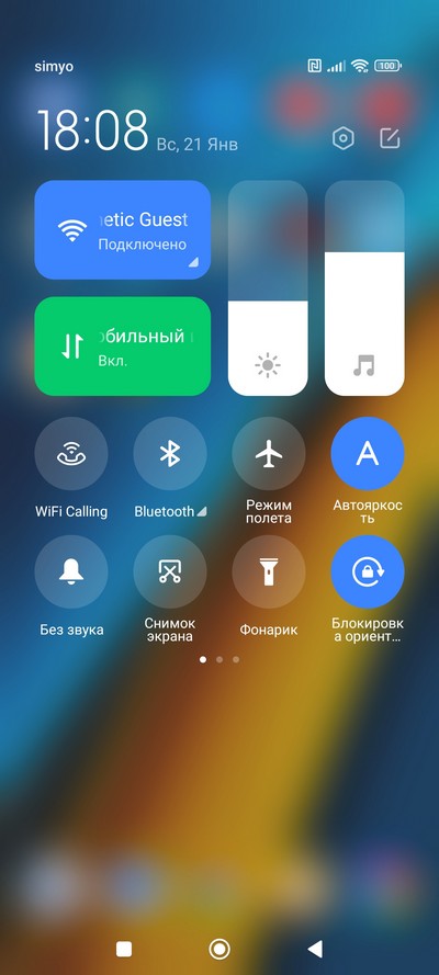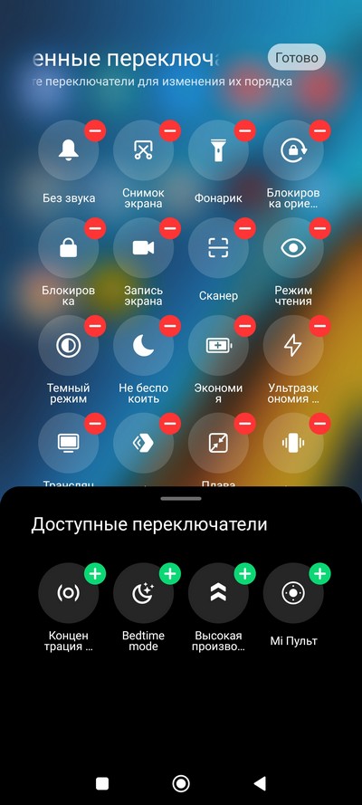 Центр управления и настройки быстрых переключателей.
