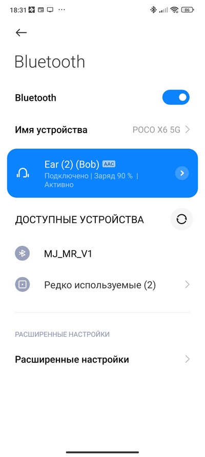 Для проверки беспроводного звучания подключил наушники Nothing Ear (2). Наушники подключились по кодеку AAC. Качество очень хорошее - неплохие для затычек басы, уверенная середина, детальные высокие. Уровень максимальной громкости достаточный для использования на улице в шумном окружении.