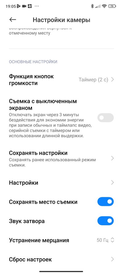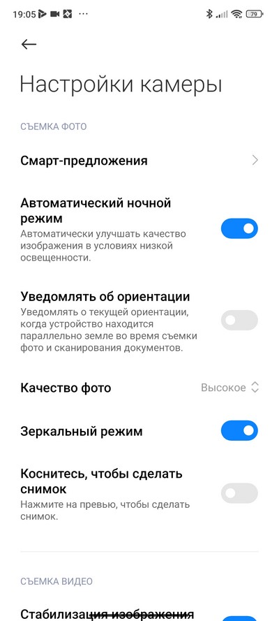 Настройки камеры.