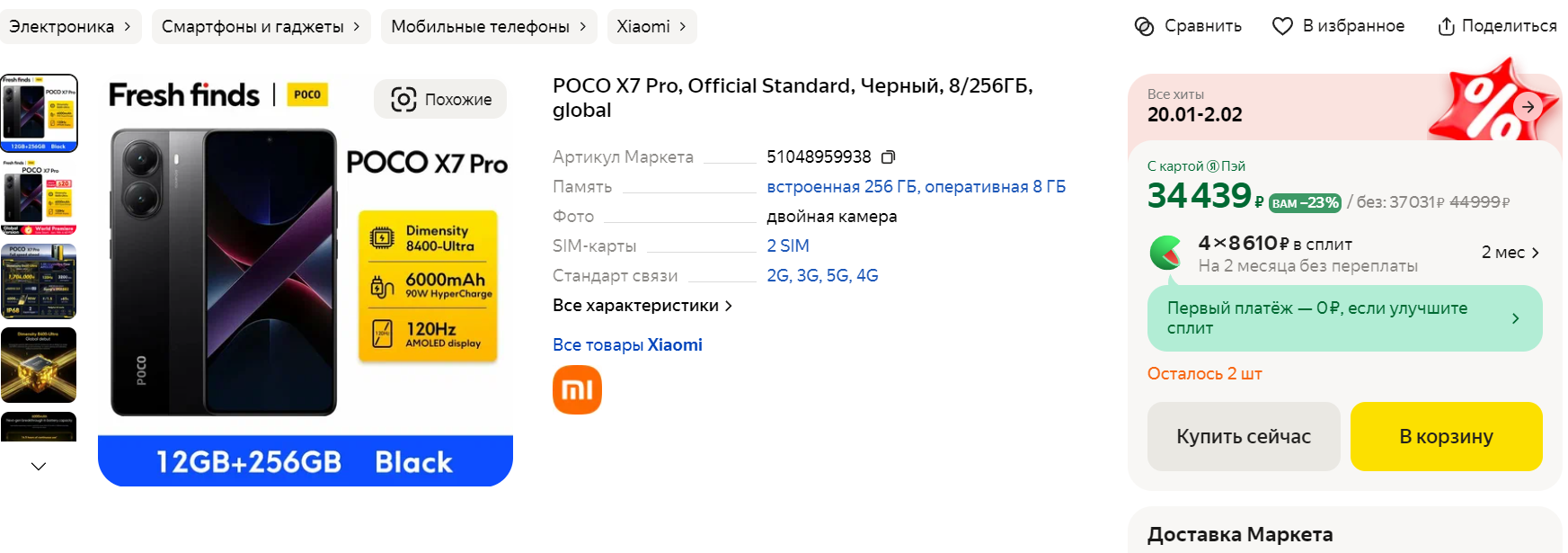 | "Яндекс.Маркет" | от 31 тысячи 12/512 |