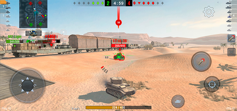 Танки на максимальных настройках и HD-текстурах все время держались на уровне 57-61 fps и не проседали даже в динамичных сценах.