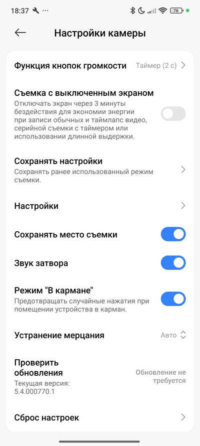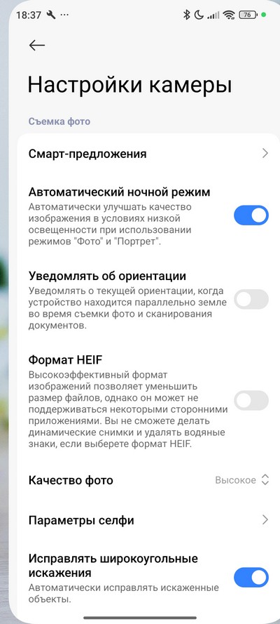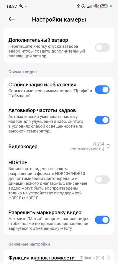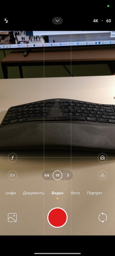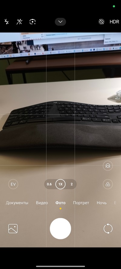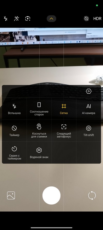 Интерфейс камеры. Снизу переключаются режимы: профи, документы, видео, фото, портрет, ночь и еще (набор настраивается). Выше переключение между сверхшириком, основной камерой и цифровым зумом (по умолчанию 2-кратный или 4-кратный, но можно вызвать линейку зумов и масштабировать до 10-кратного). Сверху - пиктограммы различных переключателей и пиктограмма меню. На правом скриншоте - окно меню с настройками.
