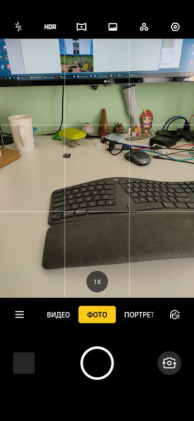 Интерфейс камеры - стандартный для современных смартфонов. Снизу переключатели: видео, фото, портрет. Меню слева - дополнительные режимы. Над основными режимами кнопка переключения камер: сверхширик, основная камера, двукратное увеличение (цифровое), пятикратное увеличение (также цифровое).