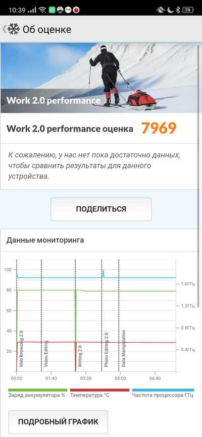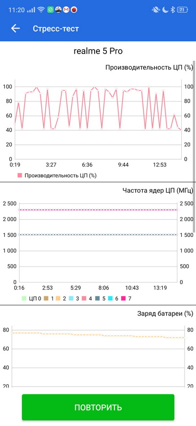 Тест троттлинга (снижения производительности при нагрузке). Здесь с этим все в порядке, производительность практически не падает.