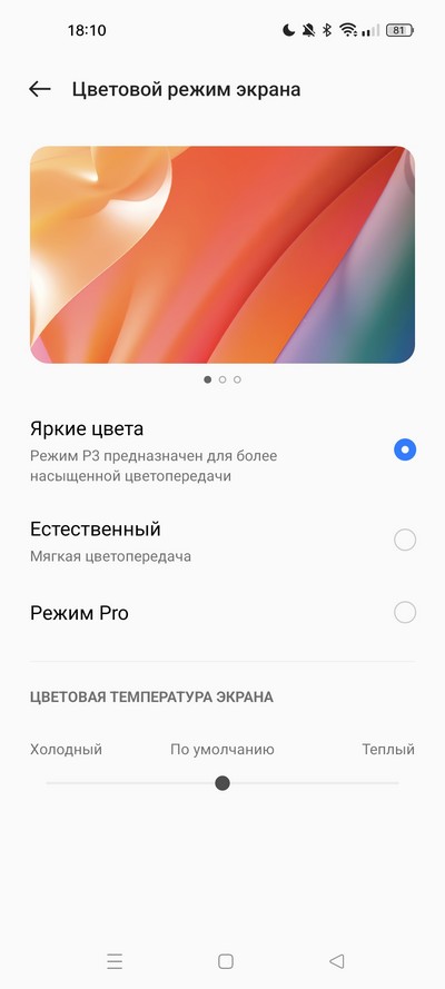 В отличие от Realme 7, который имел дисплей на матрице IPS, здесь установлена матрица Super AMOLED, причем очень хорошего качества. Отличные углы обзора, отличный запас по яркости: на прямых солнечных лучах изображение хорошо различимо.