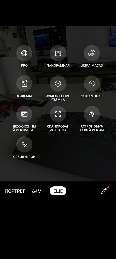 Интерфейс камеры. Сверху - быстрые переключатели, меню с настройками, снизу - переключение между двумя камерами и цифровым зумом, еще ниже - переключение режимов съемки.