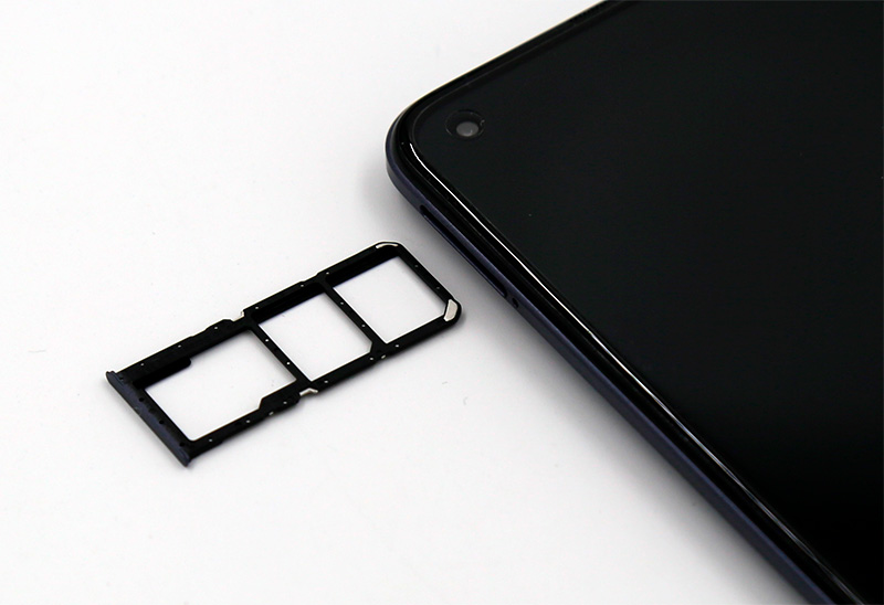 На левой грани - слот под вставку с сим-картами и картой памяти.