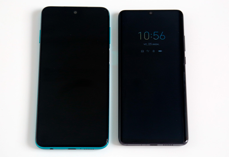 Ну и вот этот смартфон (слева) рядом с Huawei P30 Pro. Этот смартфон даже больше, хотя P30 Pro тоже, знаете ли, не малышка.