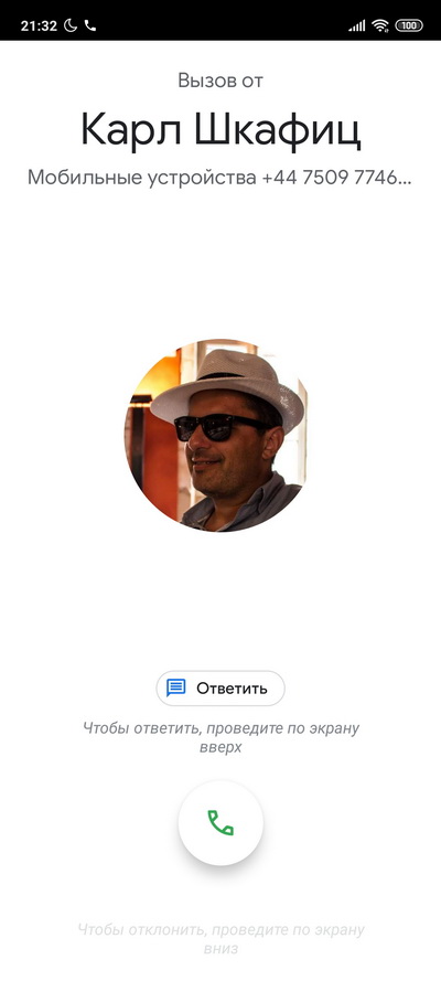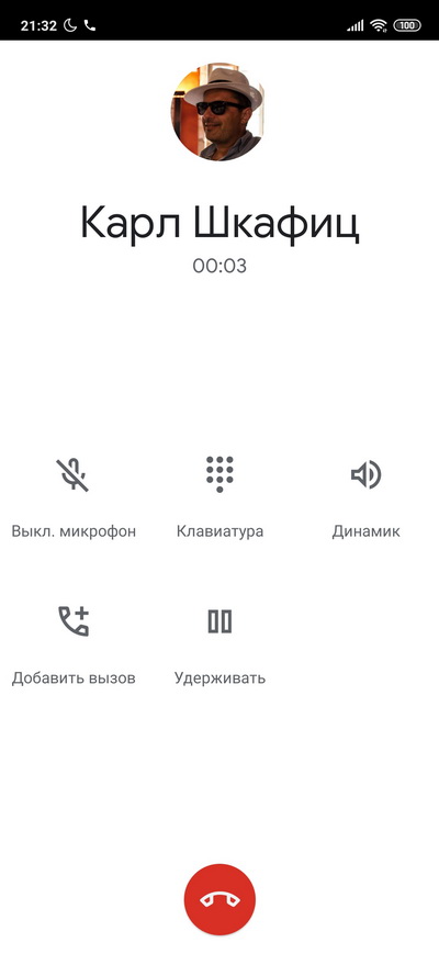 Входящий звонок и режим разговора. Телефонное приложение здесь убогое, от Android. И в нем нет записи разговора.