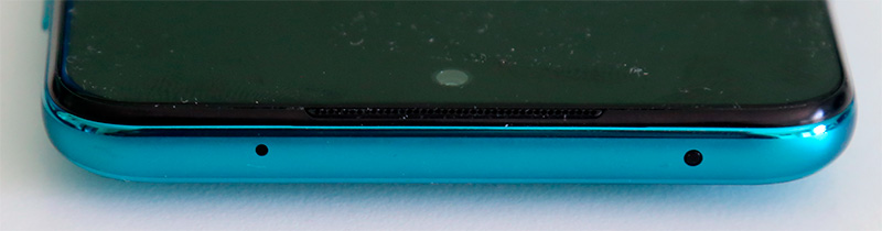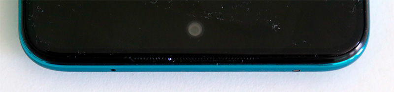 Теперь по поводу индикатора-светодиода. Во многих обзорах пишут, что никакого индикатора здесь нет. На самом деле он есть, но, скажем так, индикатор этот несколько издевательский. Он расположен в сетке разговорного динамика. И виден он только при строго определенном положении смартфона - когда он находится параллельно вашему лицу. Вот смотрите - индикатор включен. А его не видно вообще.