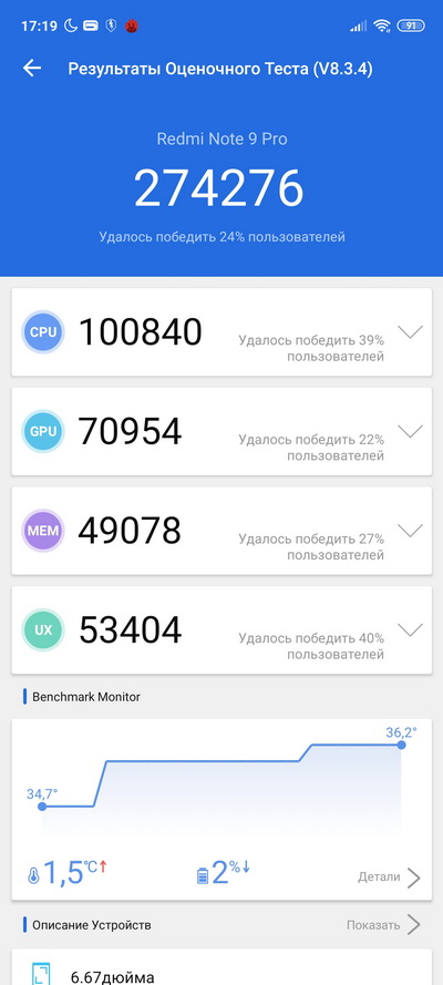 Кстати, есть еще одна модификация - Redmi Note 9 Pro Max, но она отличается только памятью (есть модификация 8/128 ГБ), селфи-камерой (32 Мпикс и матрица побольше), быстрой зарядкой на 33 ватта против 30 ватт и наличием версии с голубой расцветкой корпуса, чего у Note 9 Pro нет. Ну то есть отличия совершенно несущественные.