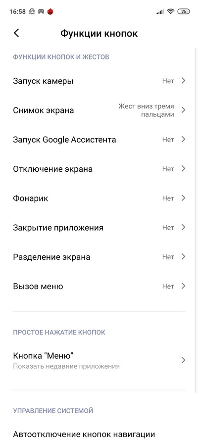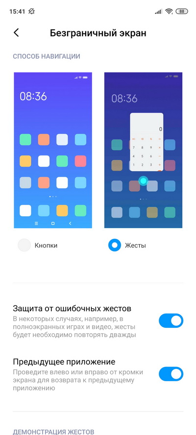 Традиционная для смартфонов Xiaomi возможность вместо экранных кнопок (настраиваемых) задать управление жестами. Это настраивается в пункте меню "Безграничный экран". Также дополнительно можно настраивать функции кнопок.
