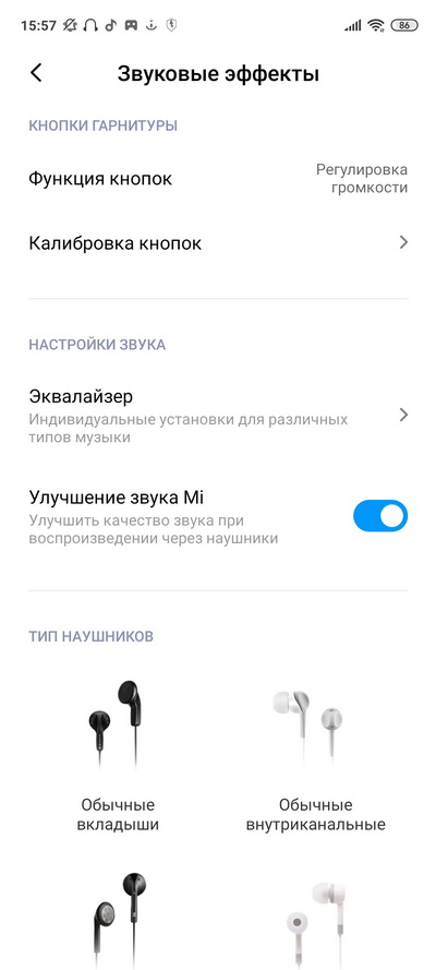 Присутствуют дополнительные возможности подстройки звука под тип наушников, также есть эквалайзер.