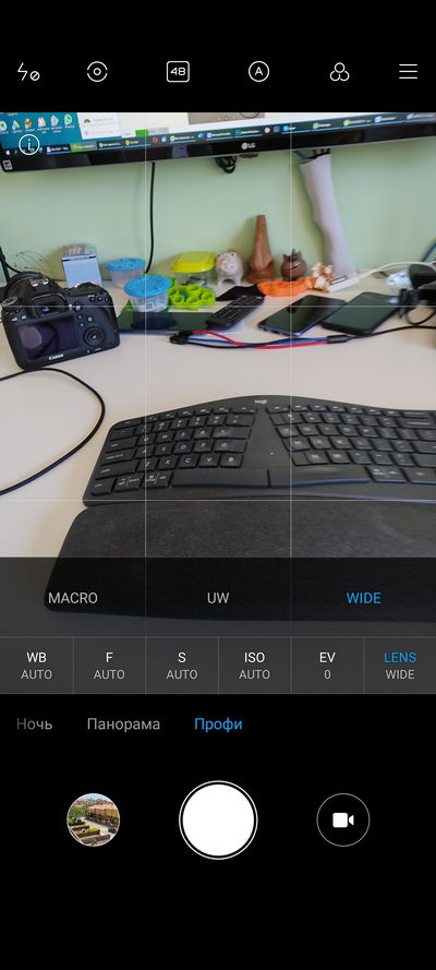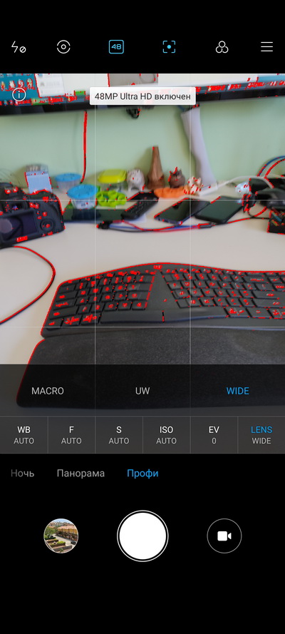 В профи режиме можно снимать в RAW, подключать режим 48 Мпикс, выделять области фокуса.