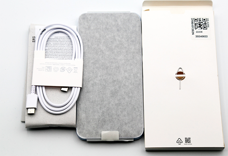 Небольшая коробка, размер которой нам намекает, что, как и у других моделей Samsung, зарядным адаптером смартфон не комплектуется.