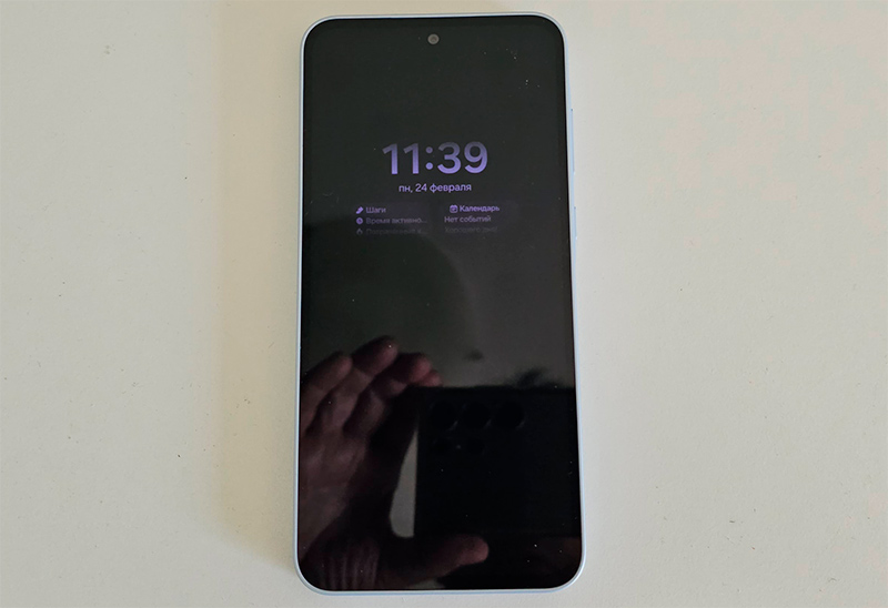 Задняя крышка, как утверждается, покрыта закаленным стеклом Corning Gorilla Glass Victus+, как и у A55. По моим ощущениям, это не стекло, а пластик, но во всех обзорах, что мне попадались, утверждалось, что это стекло.