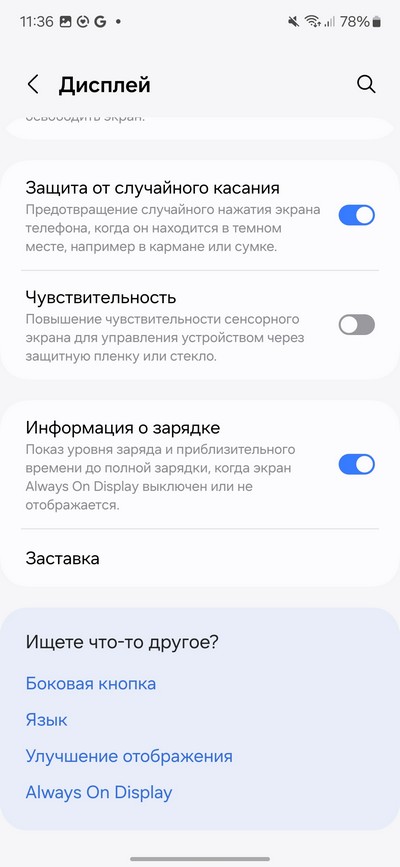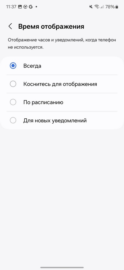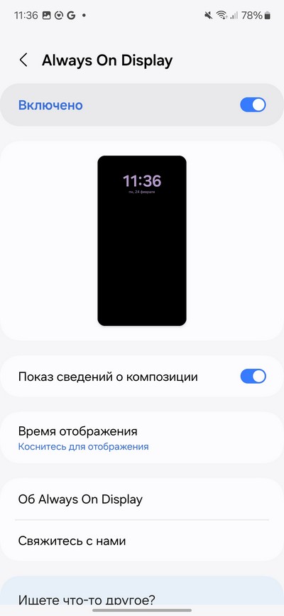 Настройки AOD. Их нужно искать через настройки экрана блокировки. AOD тут полноценный, у него есть режим постоянно включенного экрана.