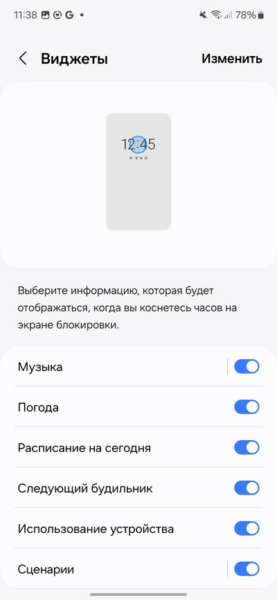 Настройки виджетов экрана блокировки, они также будут на экране AOD.