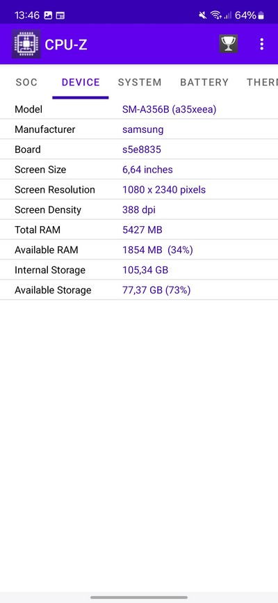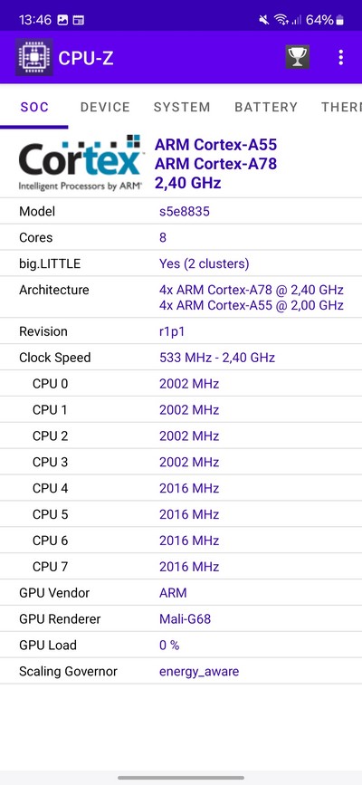Платформа: Exynos 1380 (5 nm), Octa-core (4x2.4 GHz Cortex-A78 & 4x2.0 GHz Cortex-A55)