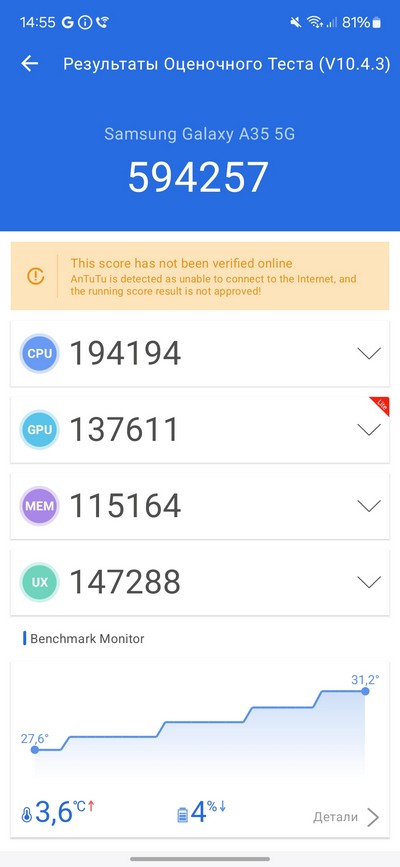 У A55 проблем с играми не было, но здесь платформа слабее, и я ожидал, что данный смартфон высокие настройки качества не потянет.