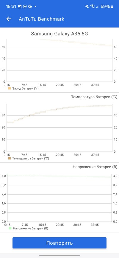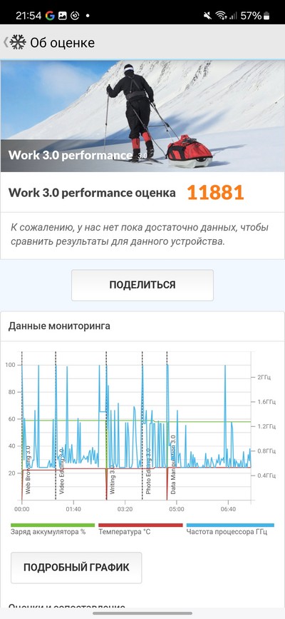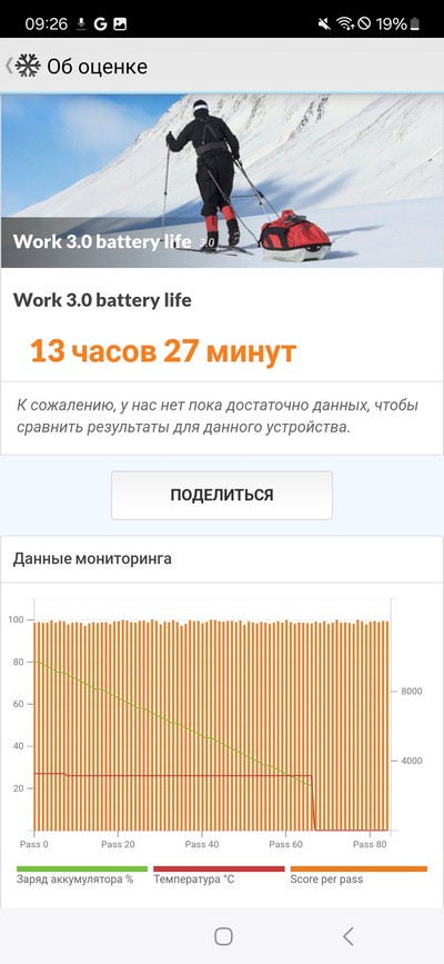 Синтетический тест PCMark. Хороший показатель. У A55 автономность по этому тесту меньше на 12 минут.