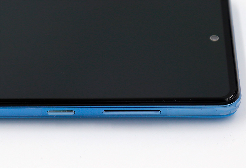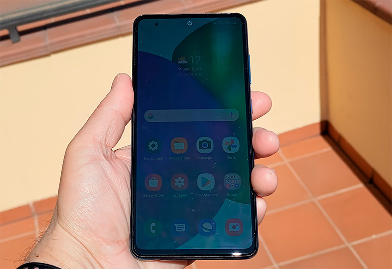 Дисплей на матрице SuperAMOLED с поддержкой частоты обновления 90 Гц. Яркий, качественный, цвета сочные, углы обзоры хорошие, однако при сильном отклонении по вертикали белый цвет уходит в серовато-синеватый. Есть качественное олеофобное покрытие, эффективный антибликовый фильтр, на прямых солнечных лучах изображение хорошо различимо.