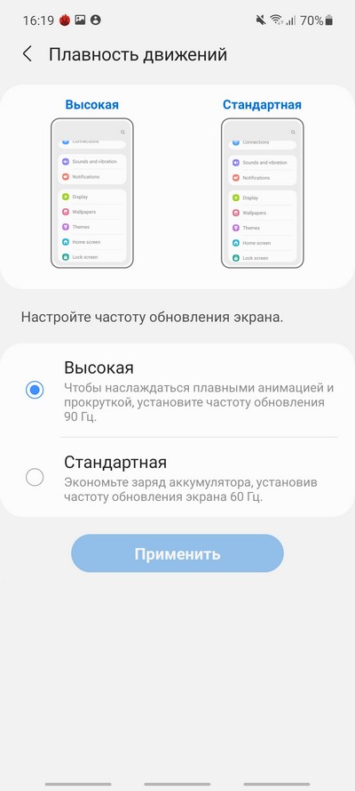 В моем режиме использования на частоте обновления 60 Гц смартфон два дня жил нормально, но к концу второго дня заряда оставалось уже очень мало (порядка 5-10%). Включение частоты обновления 90 Гц отбирало еще где-то 10-15% заряда, так что в таком режиме два дня смартфон уже мог не прожить.