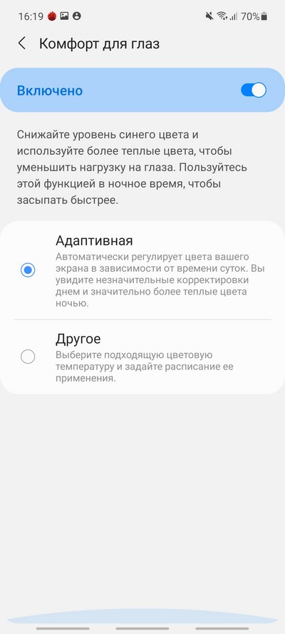 Частота обновления - стандартная или повышенная. Подстройка цветовой температуры для большего комфорта.