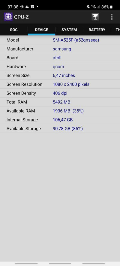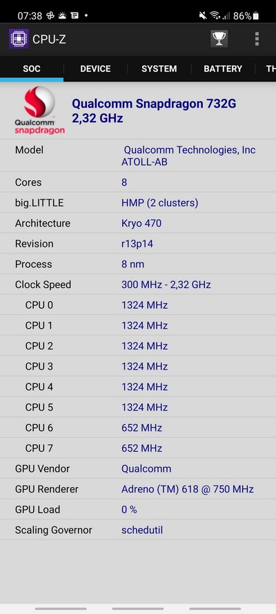 Платформа: Qualcomm SM7125 Snapdragon 720G (8 nm), CPU Octa-core (2 × 2.3 GHz Kryo 465 Gold & 6 × 1.8 GHz Kryo 465 Silver)