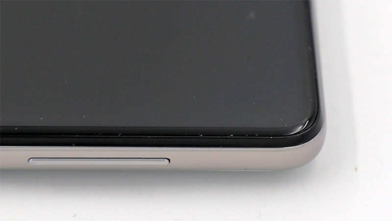 Отличные углы обзора, при сильных отклонениях белый цвет приобретает малозаметный голубоватый оттенок. Отличный запас по яркости, максимальная яркость 420 нит: на прямых солнечных лучах изображение хорошо различимо. Тонкие рамки, фронтальная камера помещена в небольшой круглый вырез сверху в центре.