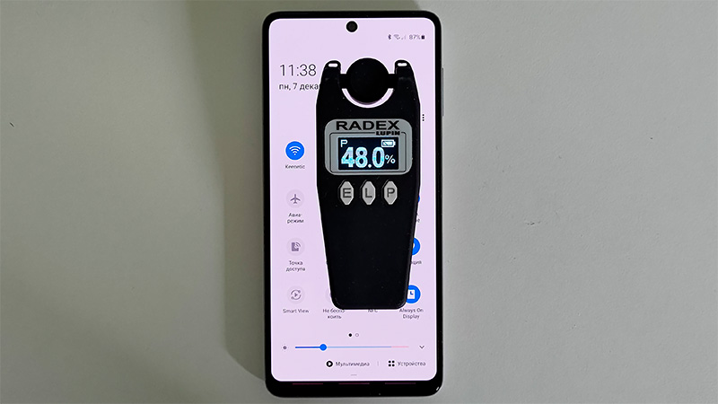 На минимальной яркости (примерно 5%) - норма превышена в пять раз.