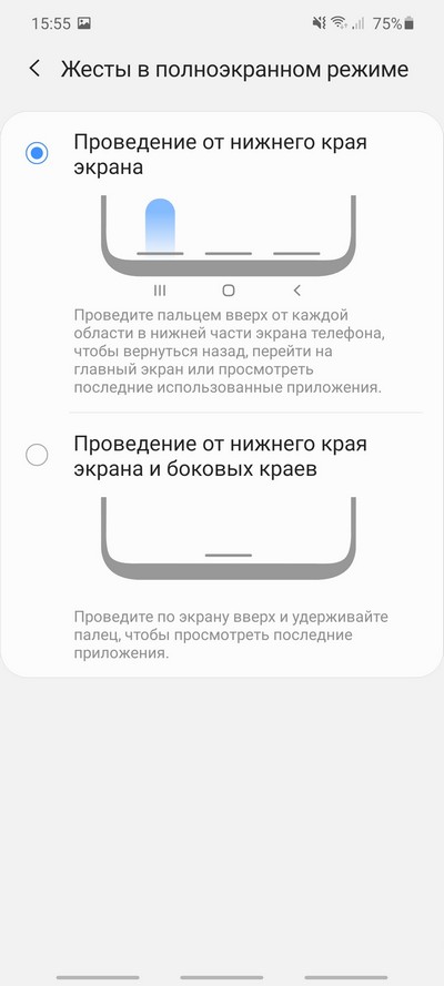 Управление мне как раз у самсунговских смартфонов нравится больше всего. Потому что у них кроме обычных экранных кнопок (настраиваемых) и стандартных андроидных жестов есть еще и отдельный режим жестов только от нижней кромки. И именно этот режим лично я считаю самым удобным!