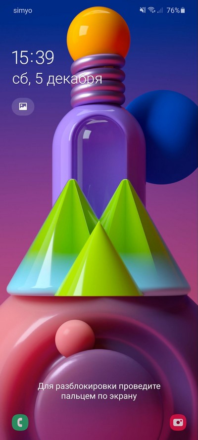 Экран блокировки, с которого можно прямо перейти в галерею, к телефону или к камере.